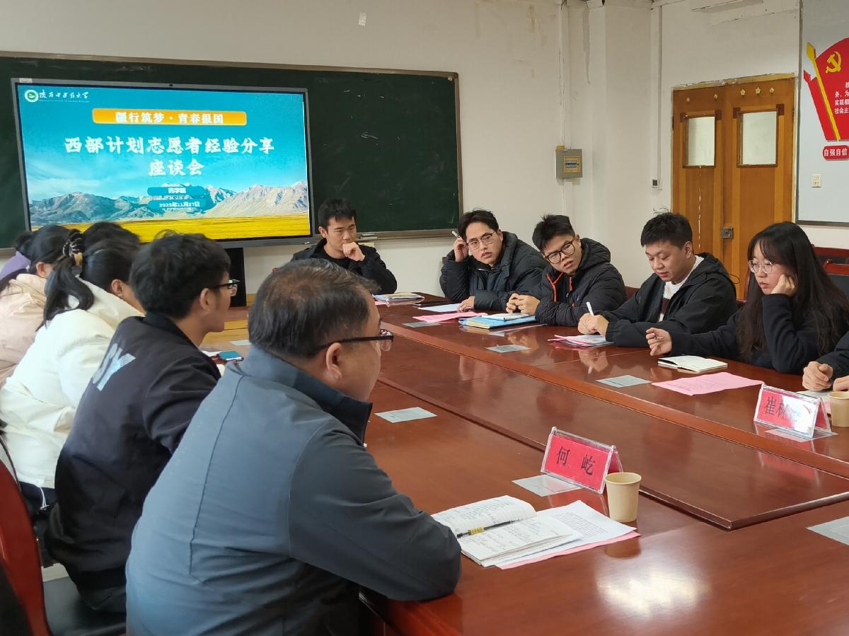 为弘扬“奉献、友爱、互助、进步” 的志愿服务精神,引导青年学子树立家国情怀、投身西部建设,11月27日下午,药学院在4211会议室举办“疆行筑梦,青春报国”西部计划志愿者经验分享座谈会。学院党委书记王萍、党委副书记何屹、团委书记李卓宁、西部计划志愿者崔林涛及2026届拟报考西部计划毕业生代表参会。