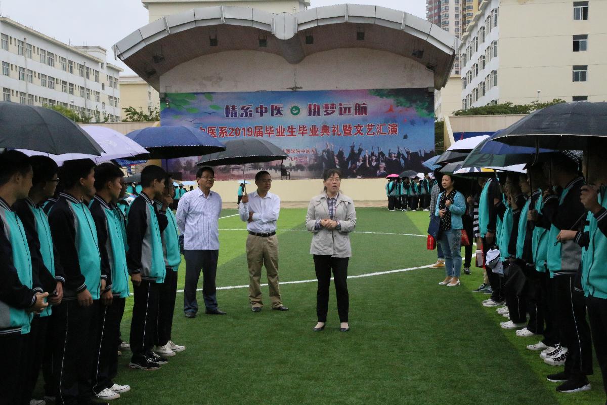 9月13日是一年一度的中秋佳节,上午8:30,天空下着淅淅小雨,药学院党委书记韦永红、院长唐玉平、党委副书记兼副院长王薇和辅导员陈珊珊老师到操场看望慰问正在参加军训的2019级新生,向全体新生表示节日的祝贺,祝大家中秋节快乐!