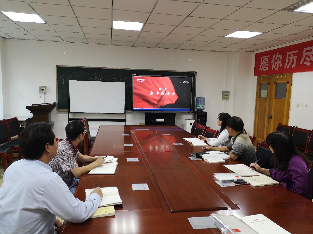 在院党员活动室,教工第一支部率先示范,在支部书记王薇同志的带领下开展题为“爱党报国、不忘教育初心、牢记育人使命”的主题党日活动,会上王薇书记回顾中国共产党成立98周年、新中国成立70周年和改革开放40年以来,我国教育事业取得的巨大成就,并结合我院教育教学和人才培养给支部成员作了讲解。支部青年委员史亚军同志为大家领学了《习近平新时代中国特色社会主义思想学习纲要》中第十九部分《掌握马克思主义思想方法和工作方法》,并结合自己工作实际谈了如何在具体工作中运用好这些思想方法和工作方法。在交流讨论环节,支部各位成员围绕党日主题进行了交流讨论并对自己具体工作中存在的问题进行分析查摆,力求将学习效果应用到实际工作中。讨论结束后,支部所有成员集中观看了大型文献专题片《我们走在大路上》第一集“新中国诞生”,全景式回顾了了新中国风雨兼程、砥砺前行的伟大历程,进一步坚定了支部成员不忘初心、牢记使命、担当作为、奉献教育的信念。